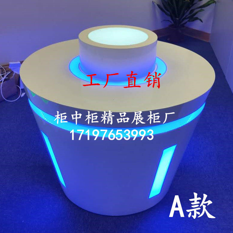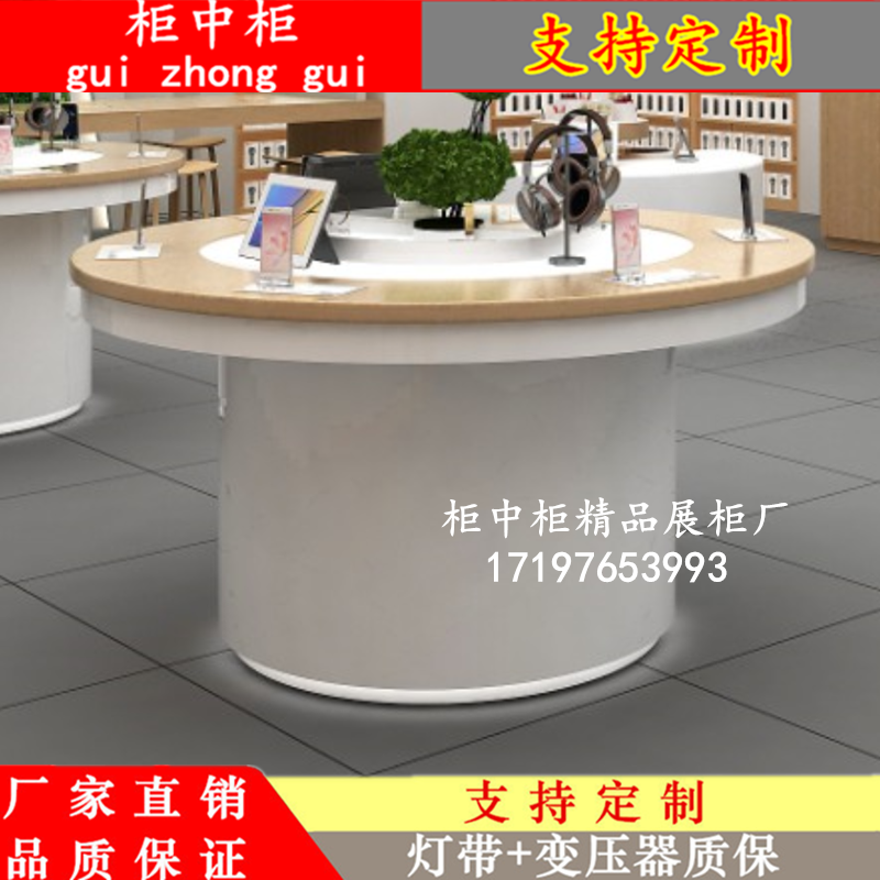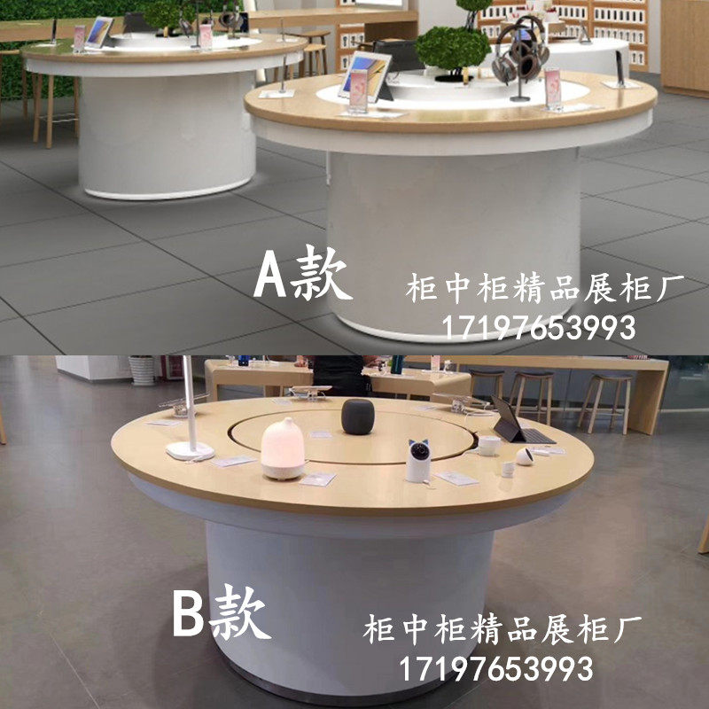 華為圓形展示臺手機數(shù)碼體驗桌木質(zhì)烤漆中島柜定制異形橢圓形展臺