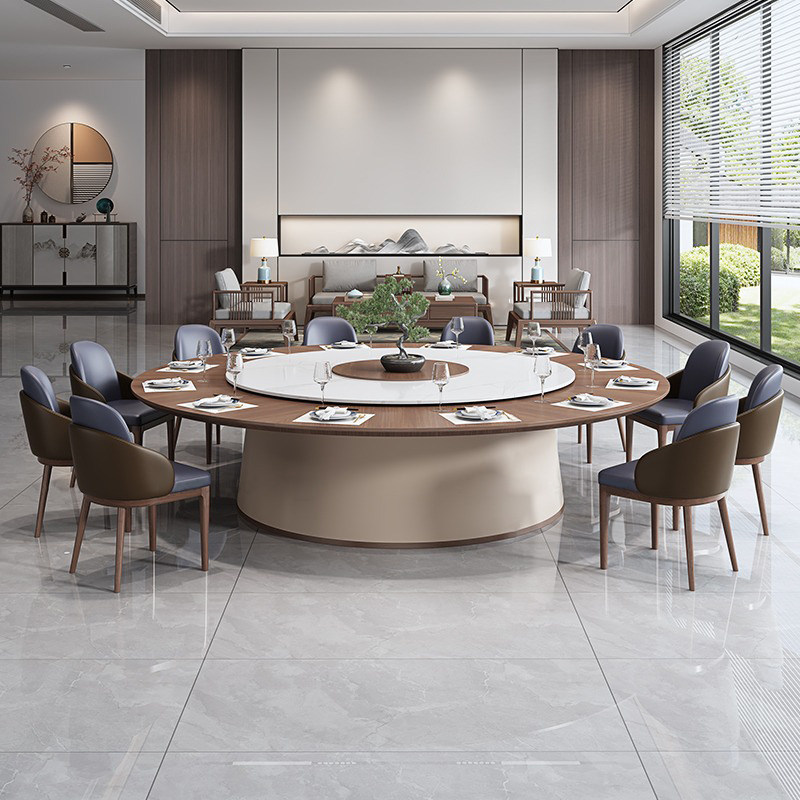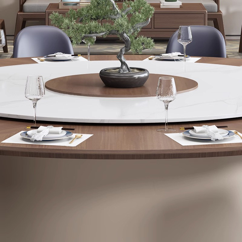 新中式酒店餐桌電動巖板大圓桌20人桌私人會所飯店包廂餐桌現(xiàn)貨
