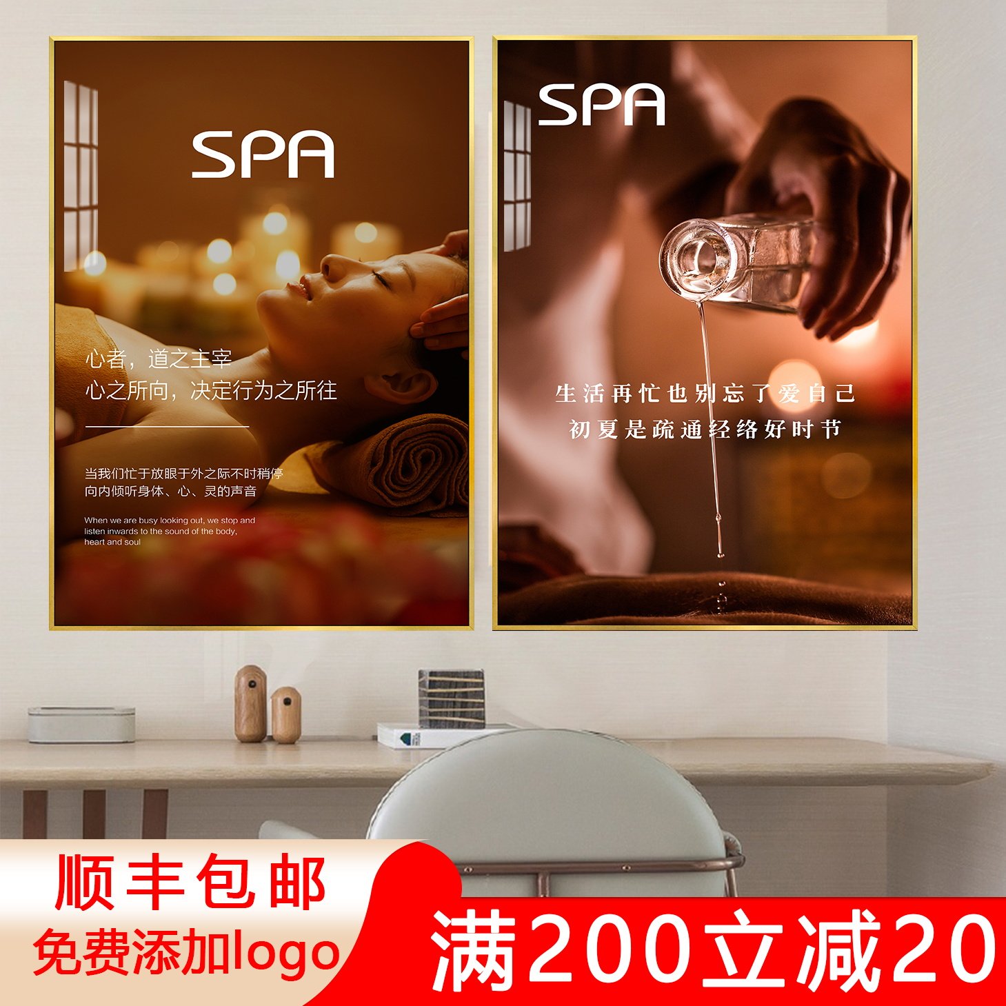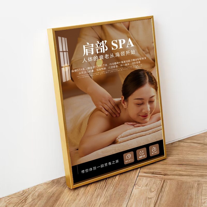 美容院養(yǎng)生館裝飾品SPA會(huì)所墻面掛畫中醫(yī)理療店肩頸按摩宣傳圖貼
